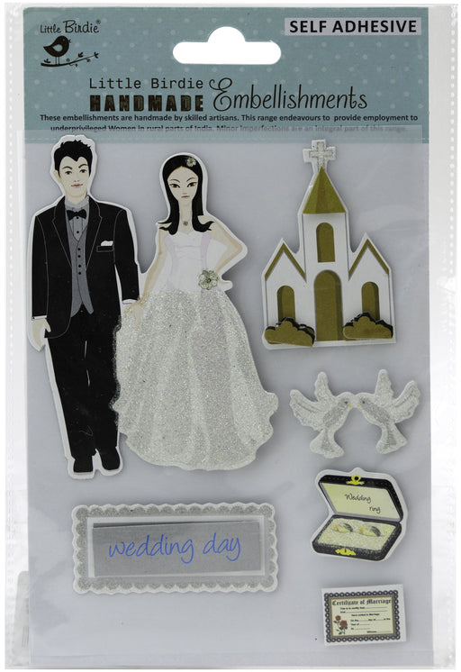 In stockEnhance the beauty of a wedding day with the Little Birdie 3D Embellishment 6/Pkg Wedding Day! These self-adhesive embellishments are designed to a...