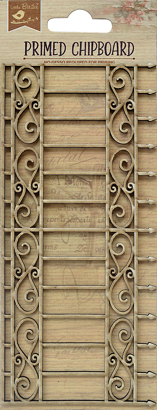 In stockElevate your crafting projects with the Little Birdie Laser Cut Primed Chipboard 1/Pkg - Victorian Grill. This package includes one intricately des...