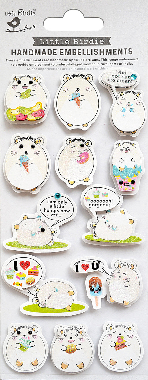 In stockElevate your paper crafting projects with Little Birdie Handmade 3D Embellishments in the "Hamster" design. This set features 13 adorable self-adhe...