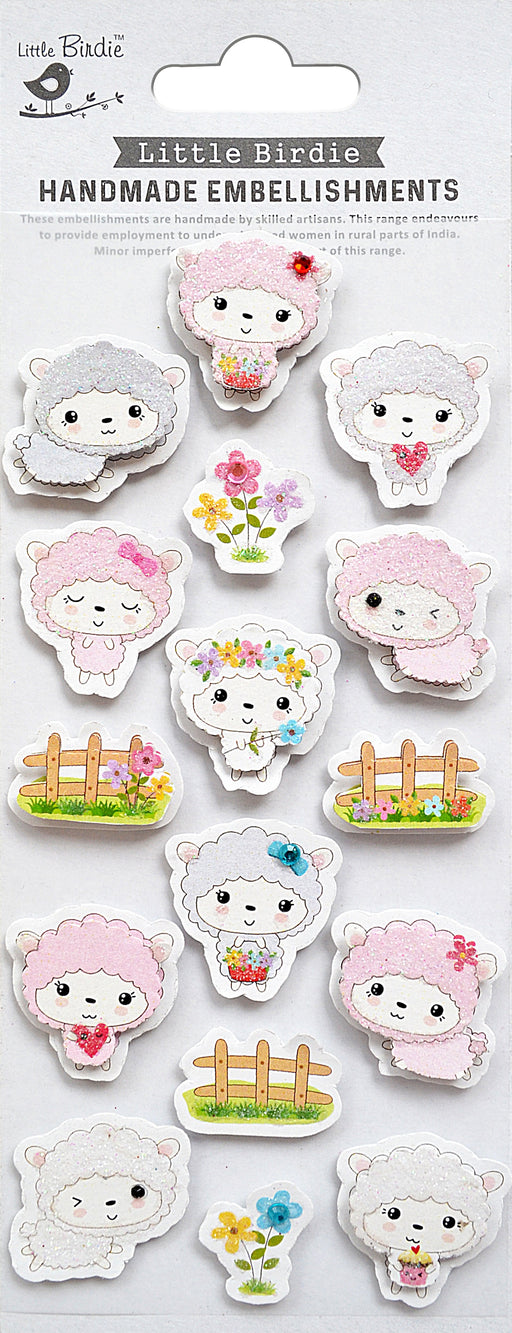 Create adorable crafts with Little Birdie Handmade 3D Embellishments in "Lamb Flock." This set contains 16 charming self-adhesive stickers that add...