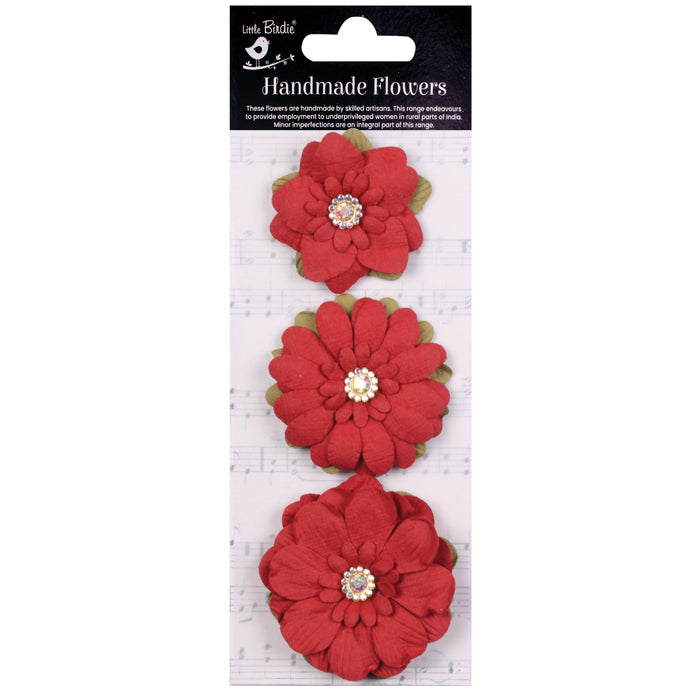 Enhanced with beautiful jeweled centers, the Jeremy Paper Flowers from Little Birdie are the perfect addition to a special project. Our Jeremy flowers offer three complementary flowers with differing shapes and sizes, all with beautiful embossed details.