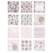 Each paper pack contains 12 single-sided papers measuring 12x12 inches. Some packs include sheet designs with pre-punched doilies, element sheets, or sheets of journaling cards.