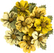 Add a unique floral burst to your next project with the Wendy Paper Flowers from Little Birdie. Shaped like single-flower dahlias with a compound, round center, each flower boasted ruffled paper leaves and pip-like stamens for sweet touch. Some colorways include metallic centers and/or stamens for additional interest.
