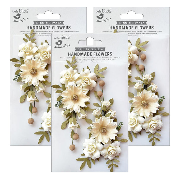 Pack of 3 - These handcrafted flowers are perfect embellishments for adding a classic floral touch to projects. Use them as it is or use inks, paints and glitter to give a personalized touch. Imported.